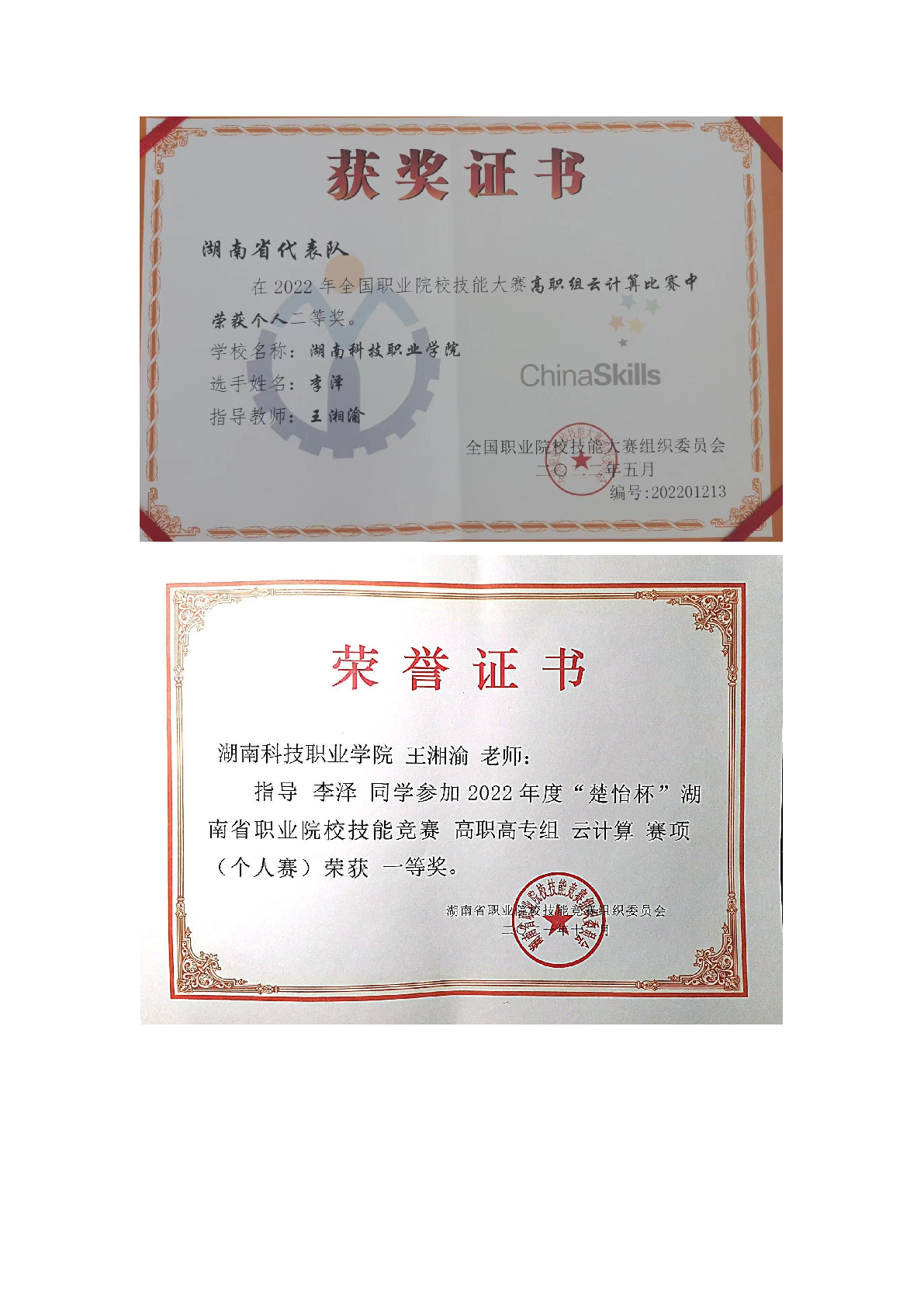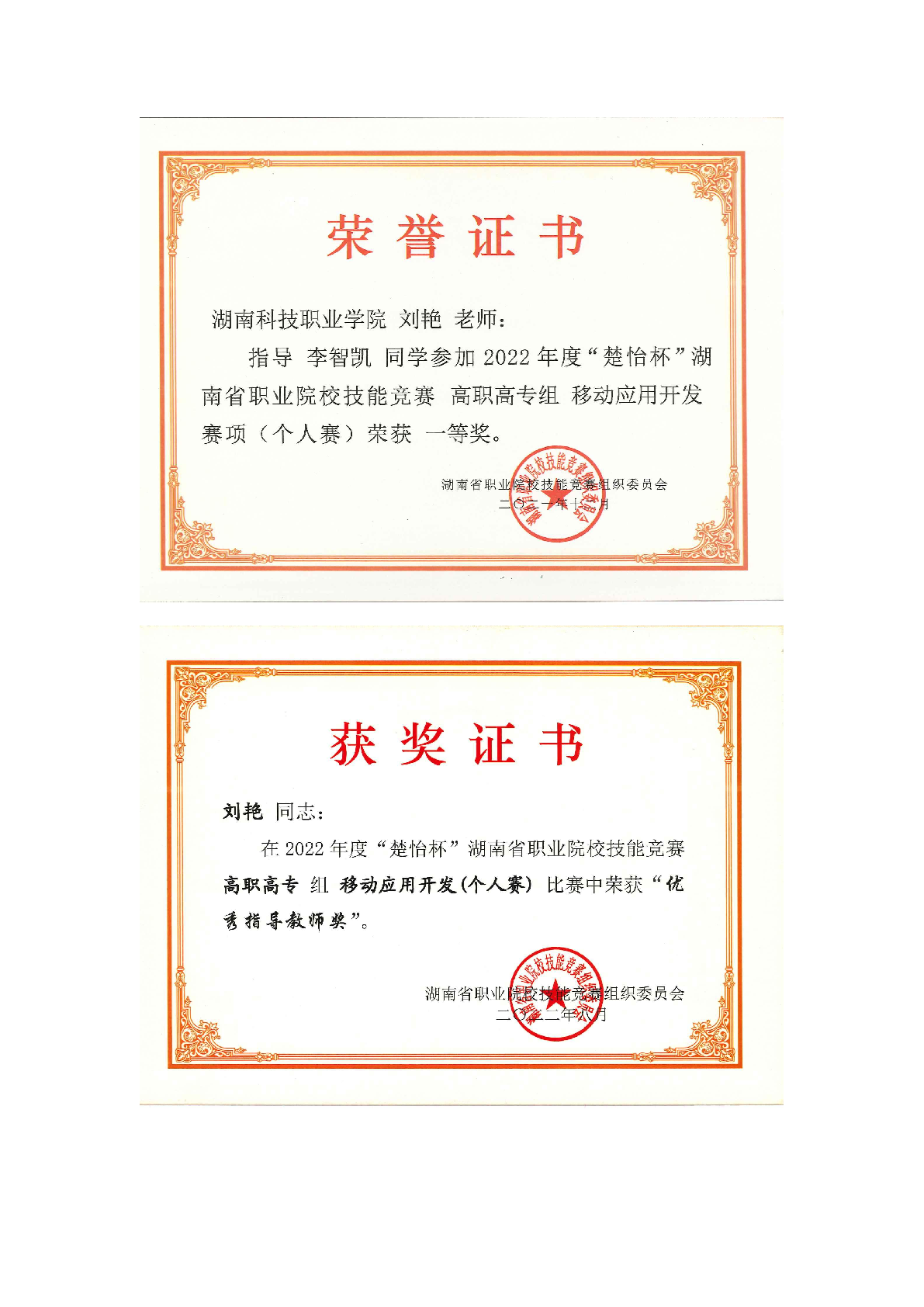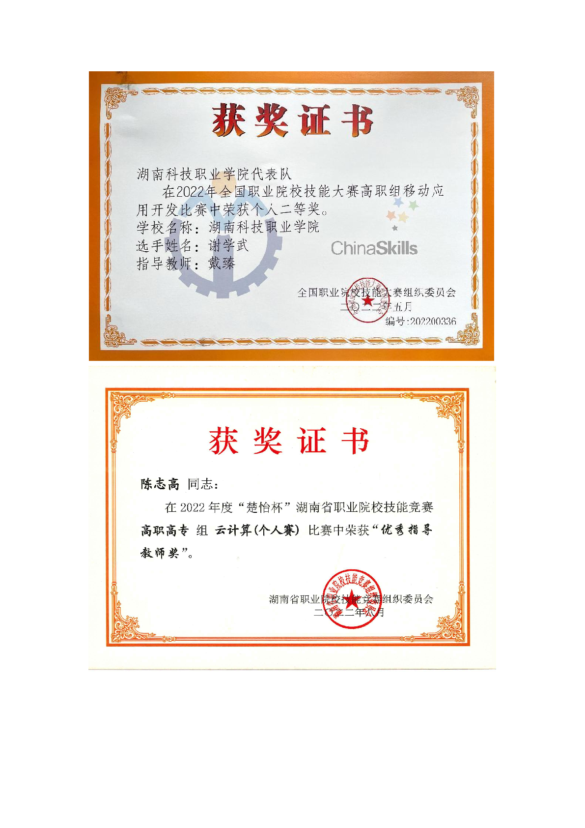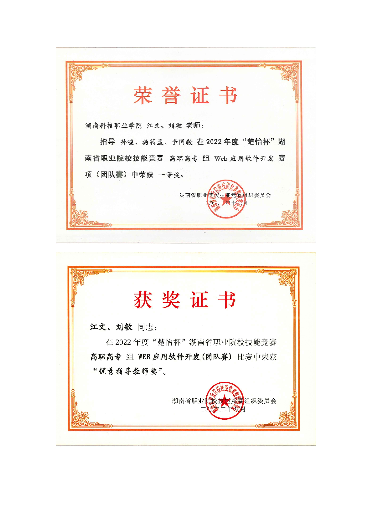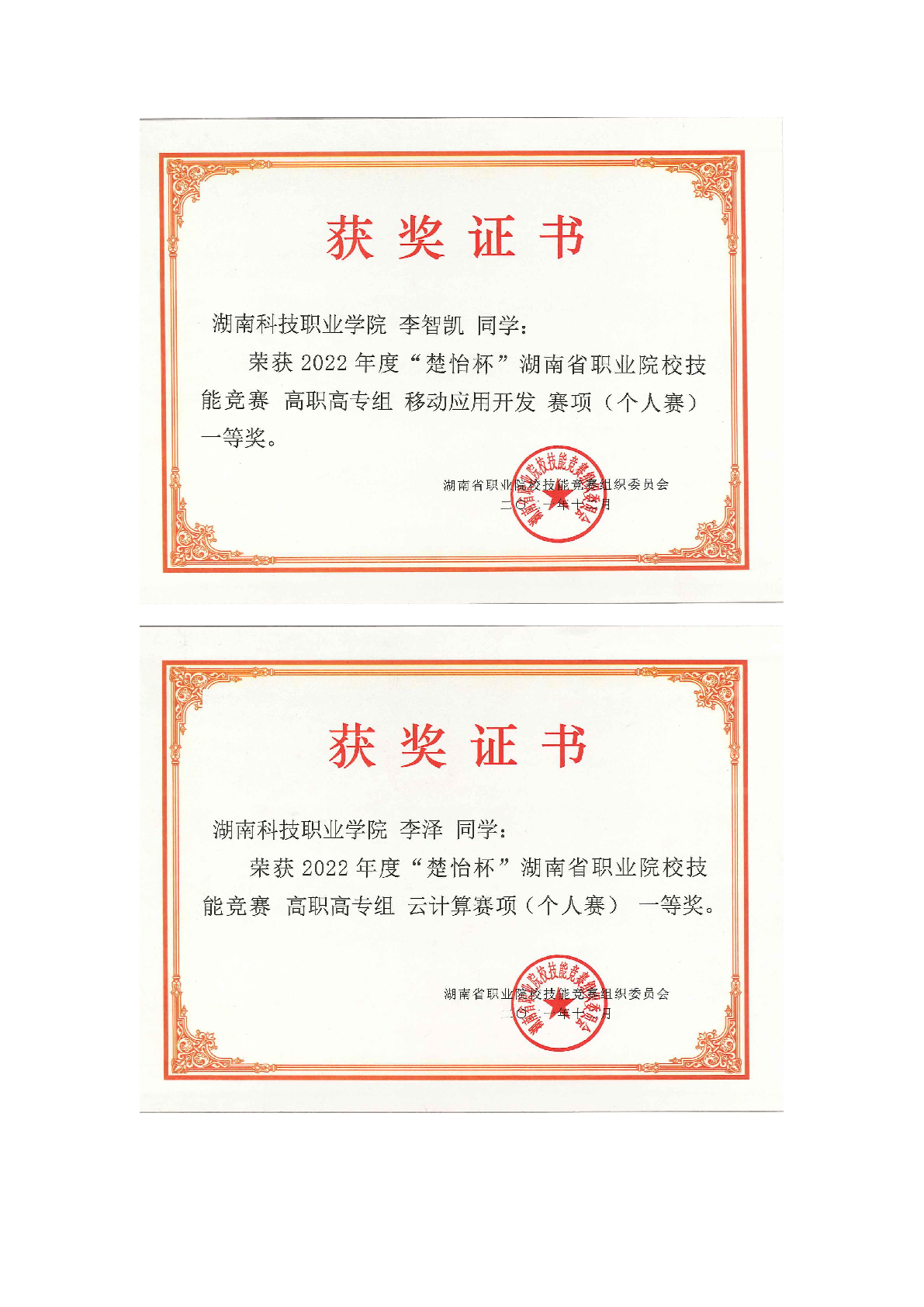 2022年度软件学院师生部分获奖证书