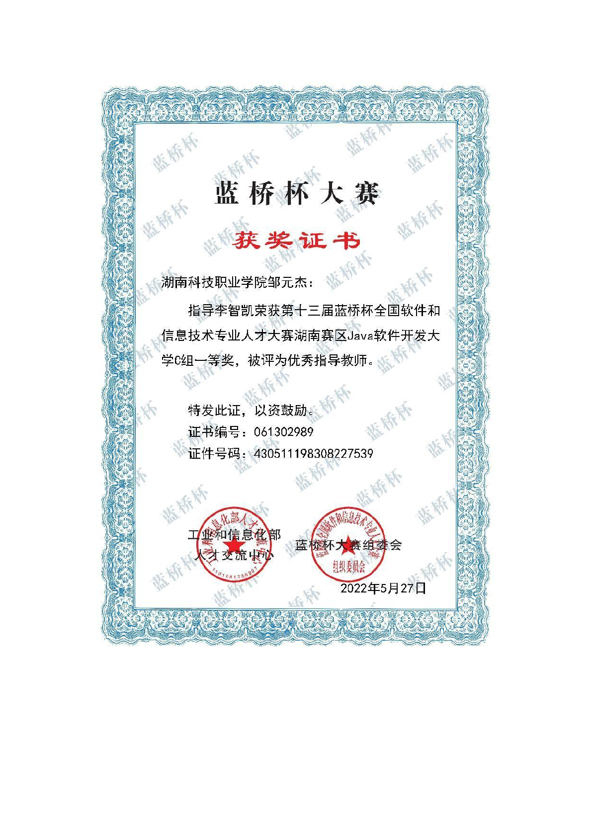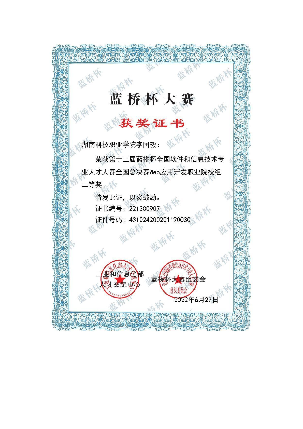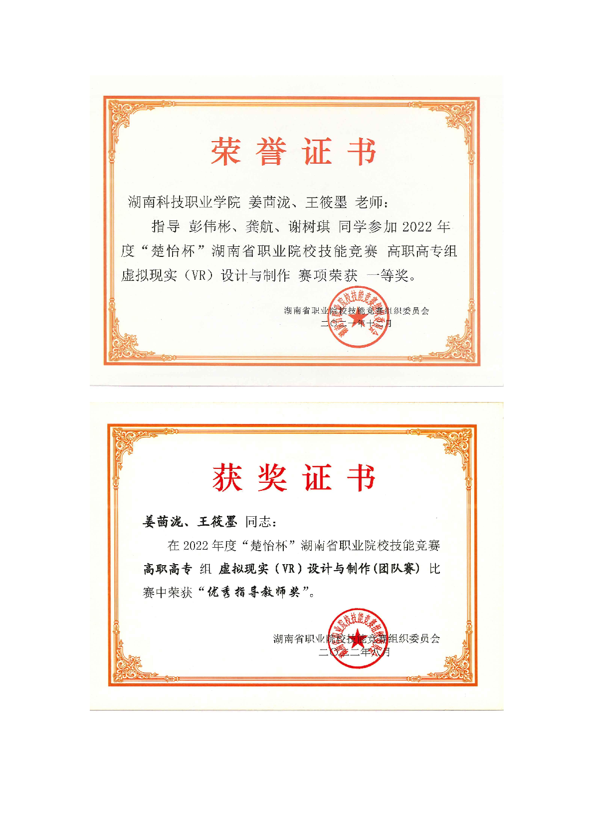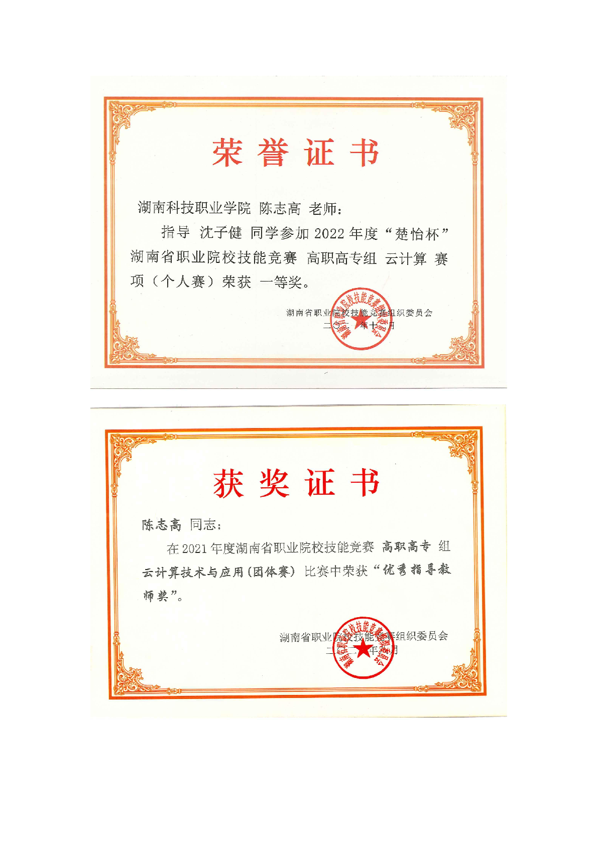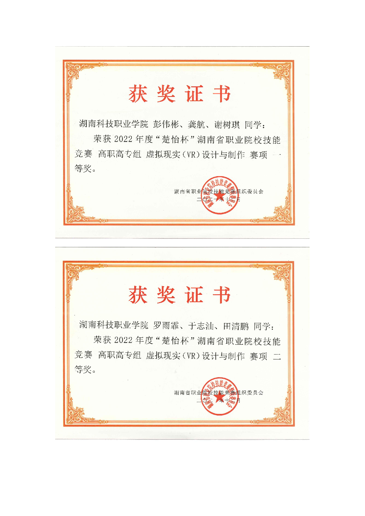 2022年度软件学院师生部分获奖证书