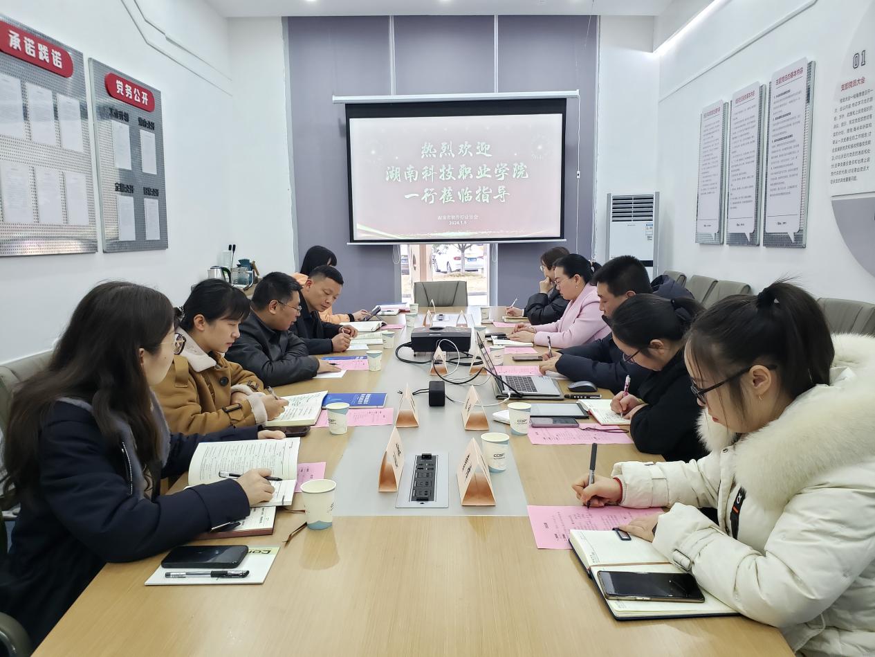 在湖南省卫星应用协会调研中,协会秘书长冉承新介绍了协会成立及发展的历程,一同参加座谈的网络安全公司负责人现场介绍了公司情况,并表示希望能在数字化和网络安全方面与学院加强合作。钟梦笔表示希望与协会多沟通交流,加强合作,利用协会搭建的平台打通校企合作最后一公里。