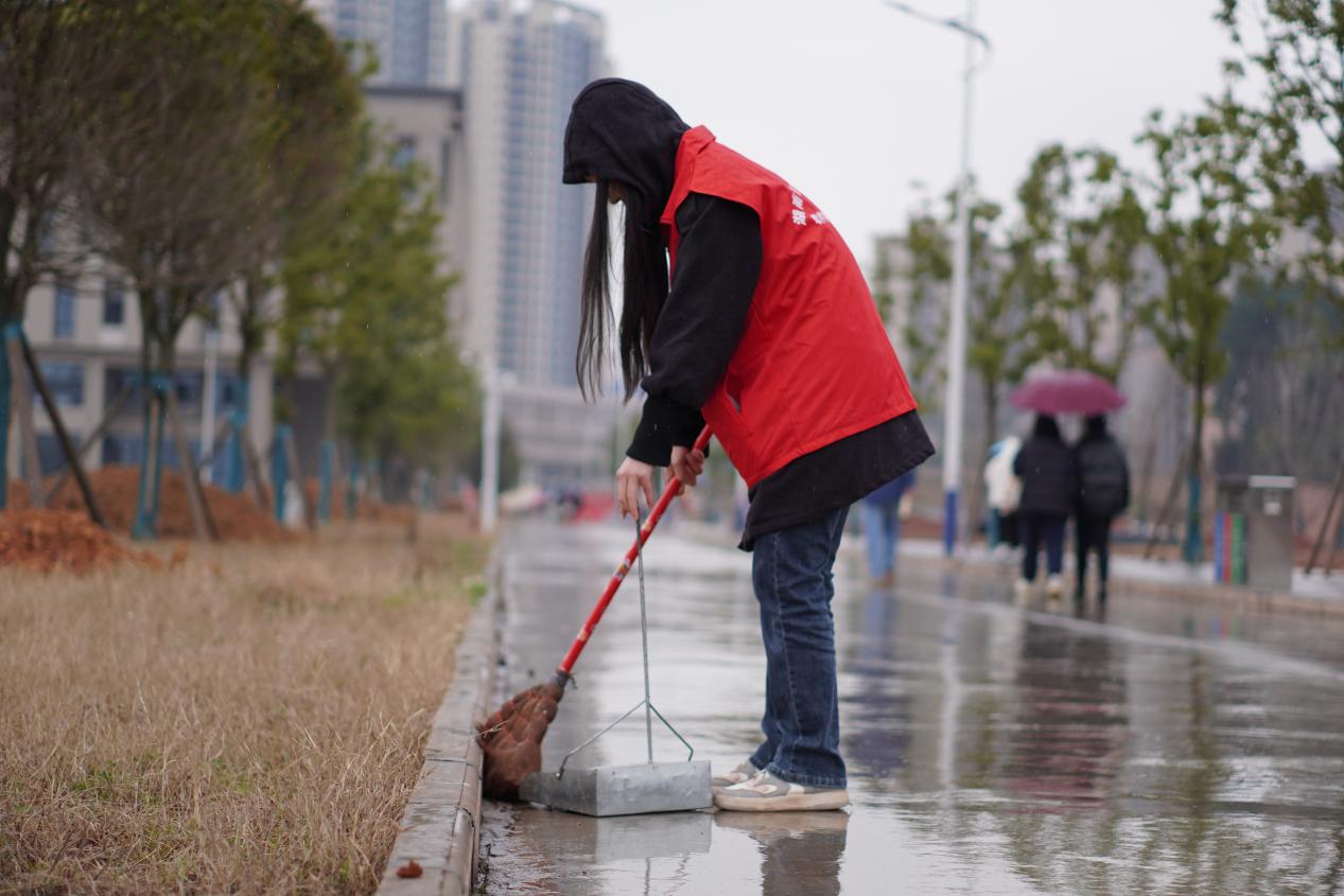 活动以营造良好校园环境,塑造优美教室环境为重点,志愿者们冒着细雨,积极投入到劳动中,在教学楼、办公楼、校园大道等区域开展活动,以实际行动开启“雷锋月里学雷锋”的序章。志愿者们发扬不怕脏、不怕累的优良传统,带上卫生工具清除卫生死角,在大家的共同努力下,校园环境变得更为干净整洁、清新靓丽。