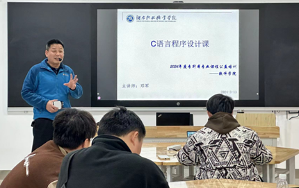 3月13日下午,公益培训课程在天心校区北院综合教学楼202教室正式开班。培训课程通过前期摸底后确定为专升本考生报考较多的《C语言程序设计》,教师支部选派软件技术专业教学经验丰富的邓军老师讲授,参加培训的除了软件学院的学生外还有人工智能学院的学生。为保证培训效果,邓军老师年前就开始了精心准备,他认真研究往年真题,分析命题风格,围绕专业课程的知识点、备考规划、解题思路、答题技巧等内容进行精准讲解,着力解决专升本考试中专业应试的实际问题。不少同学表示,通过培训,自己对于专升本的更有信心了,也更加明确了自己的升本目标和方向,之后将更加努力学习,争取实现梦想。为方便不能到现场来听课的学生备考,授课采用线上线下同步教学。