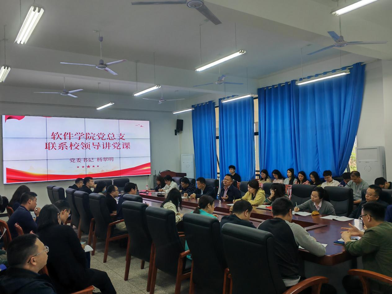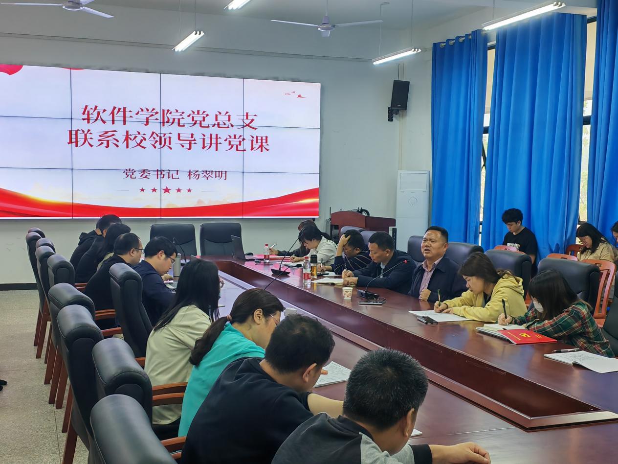 4月17日下午,软件学院党总支在第一会议室举行主题党日活动,学校党委书记杨翠明到场参加,并为软件学院党总支全体党员师生讲授了一场专题党课。