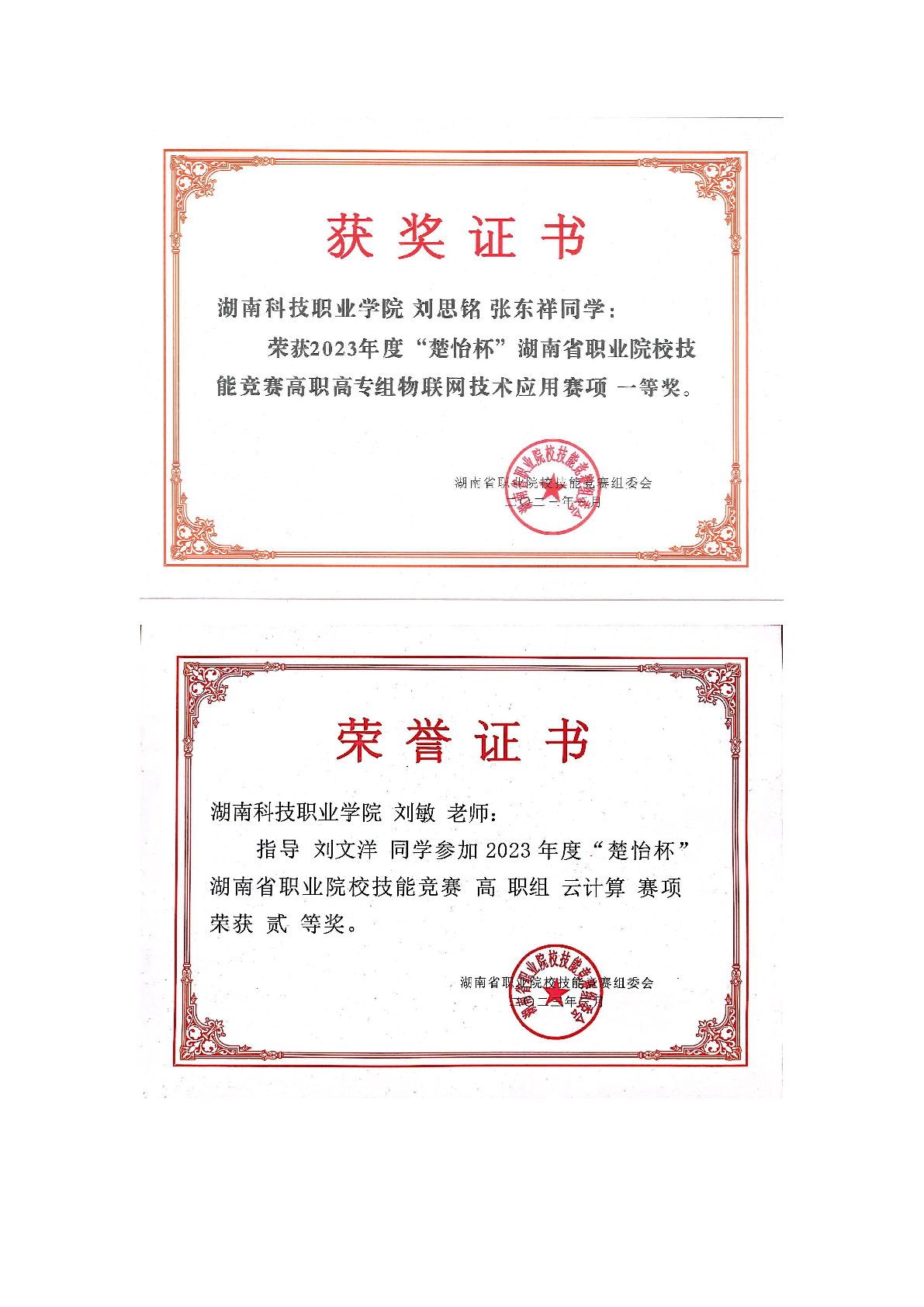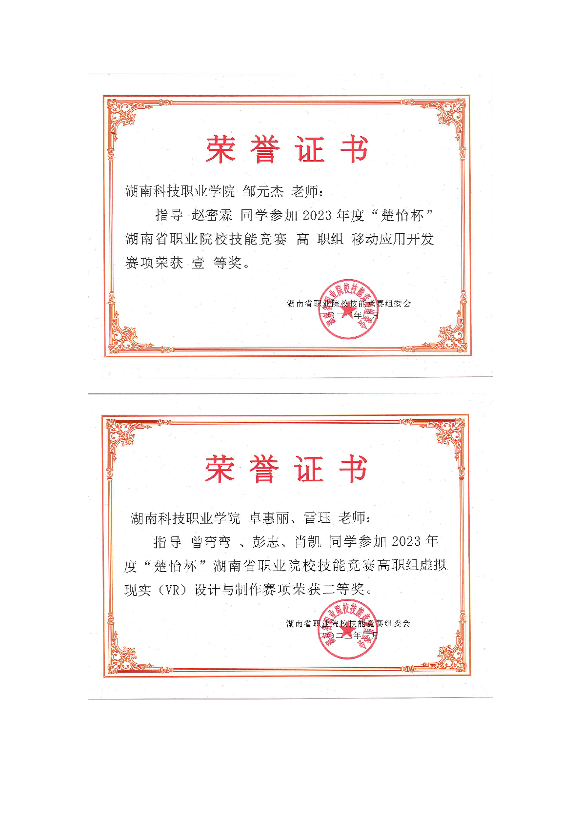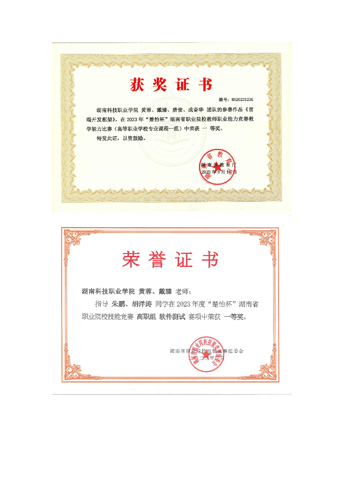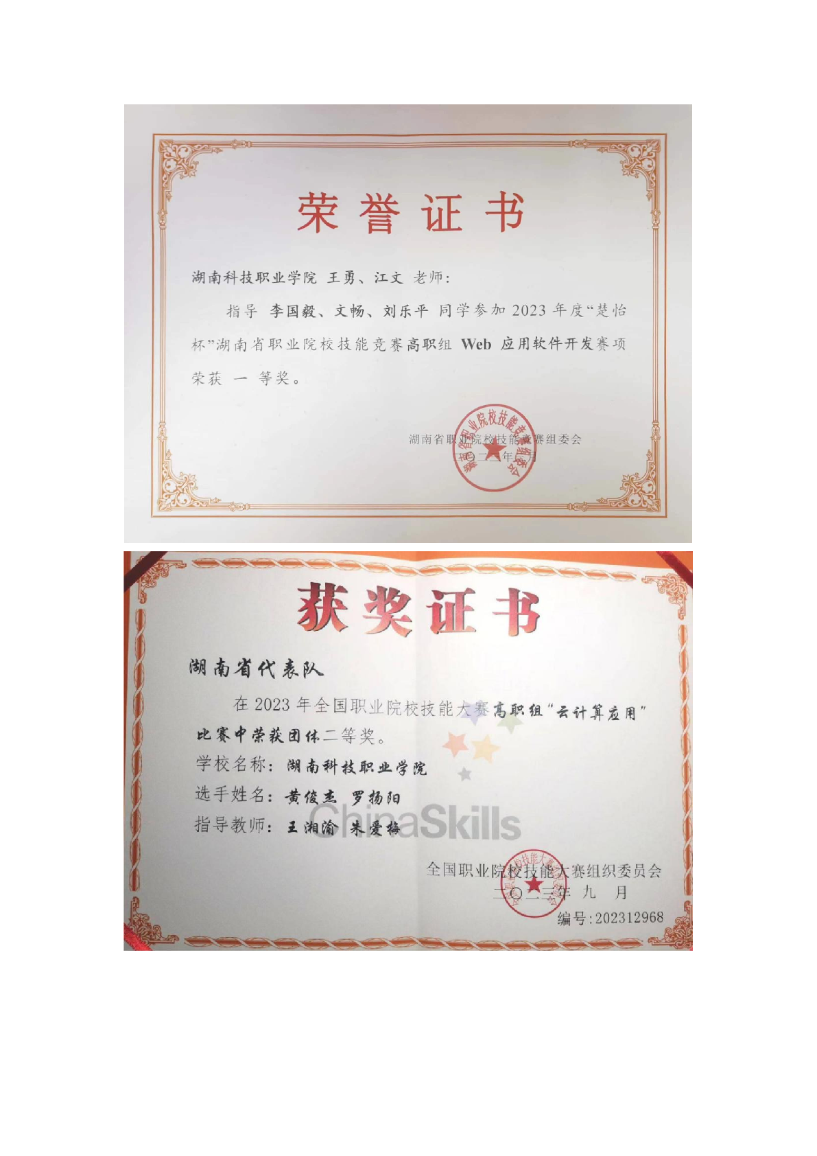 2023年度软件学院师生部分获奖证书