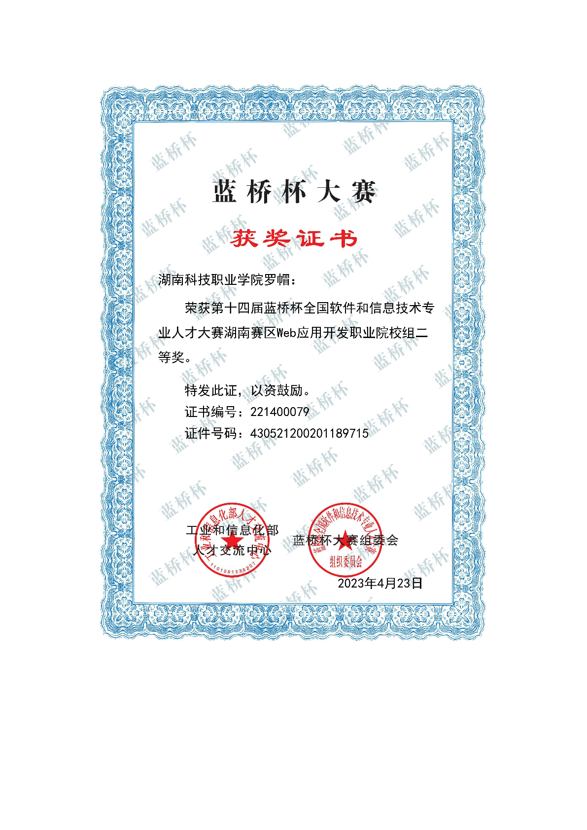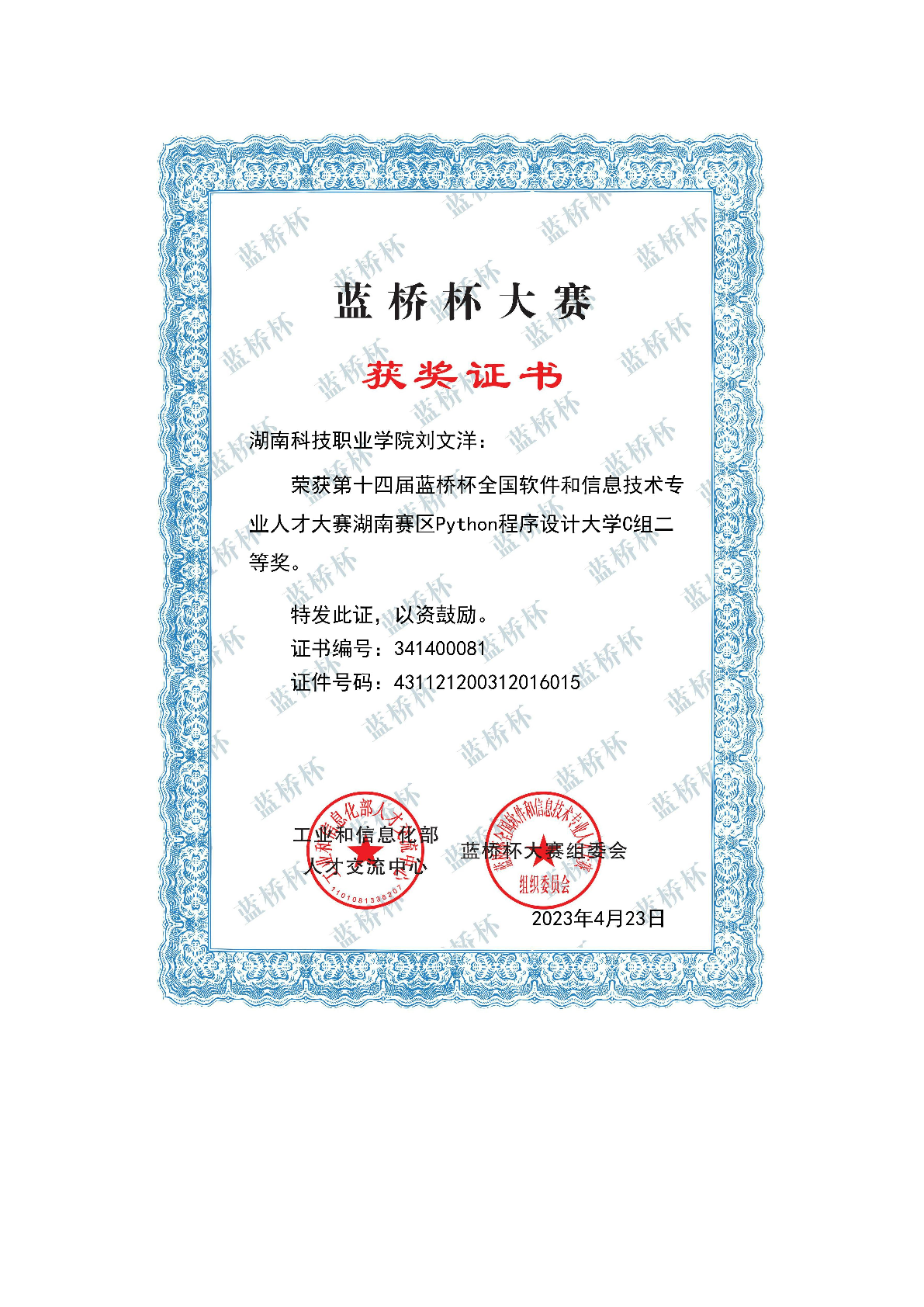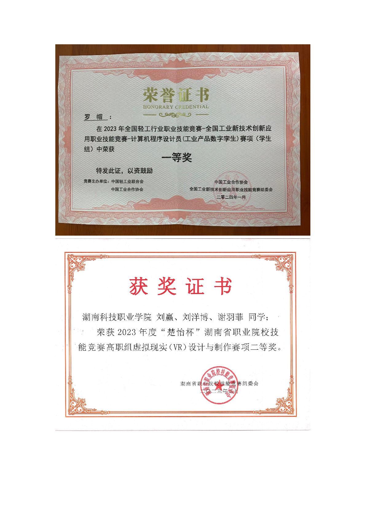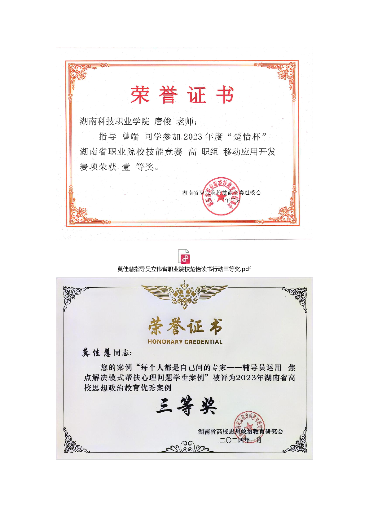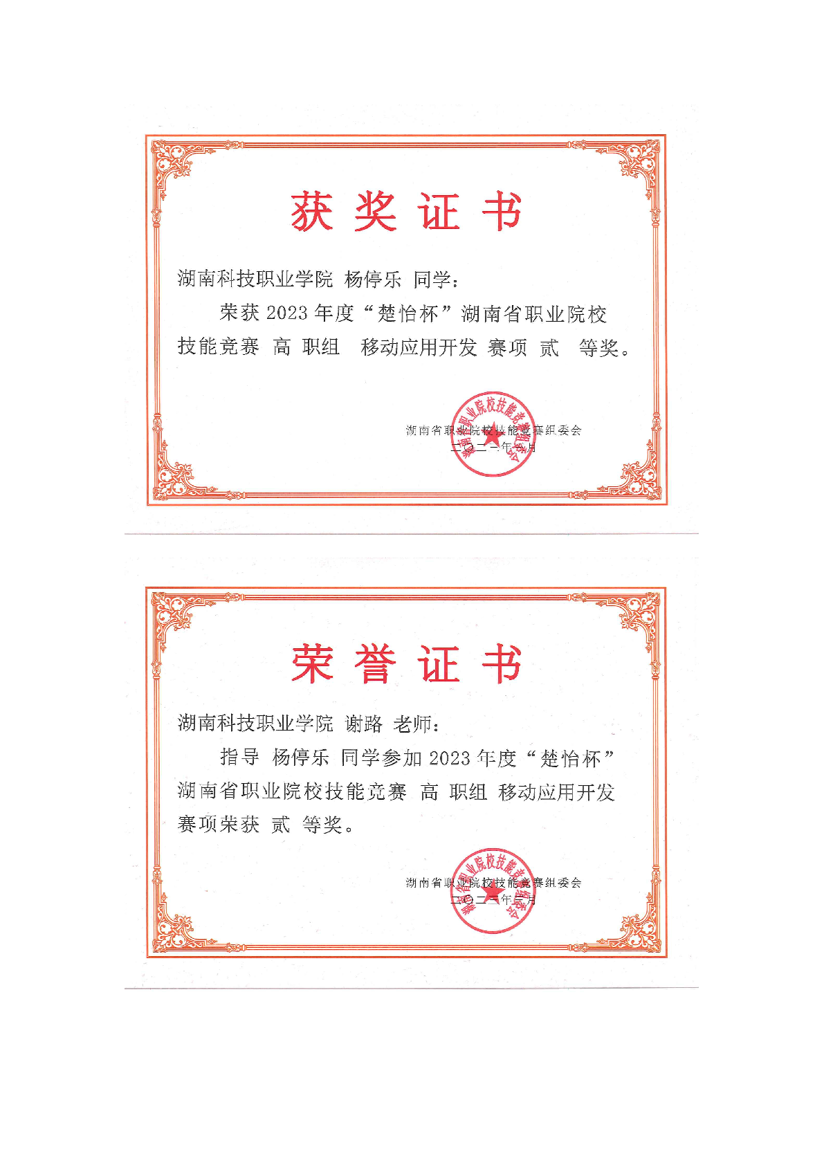2023年度软件学院师生部分获奖证书