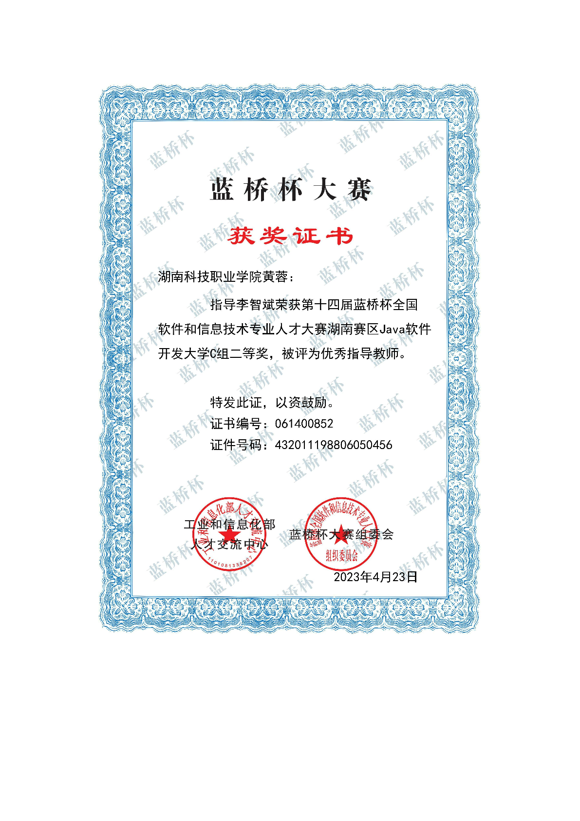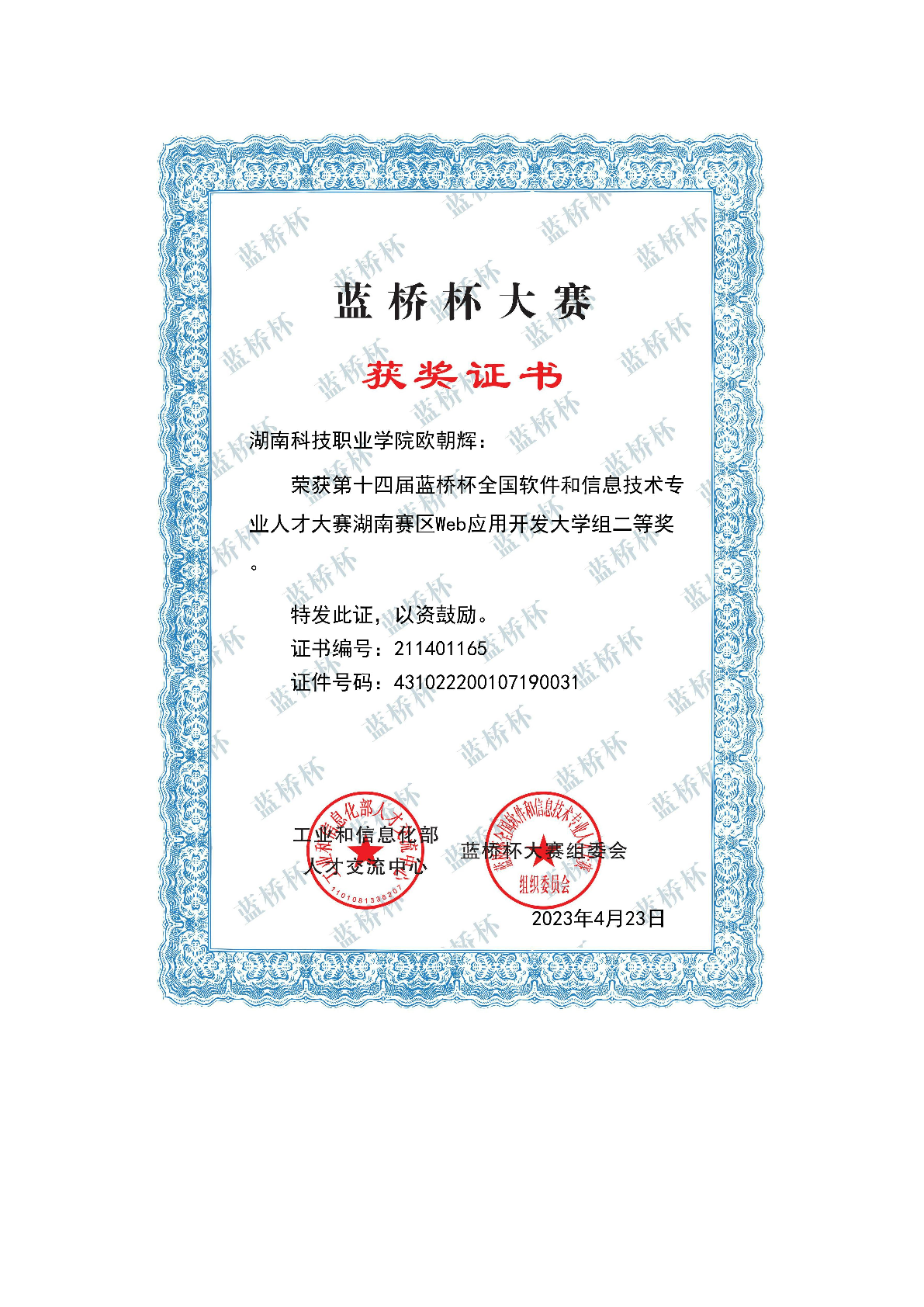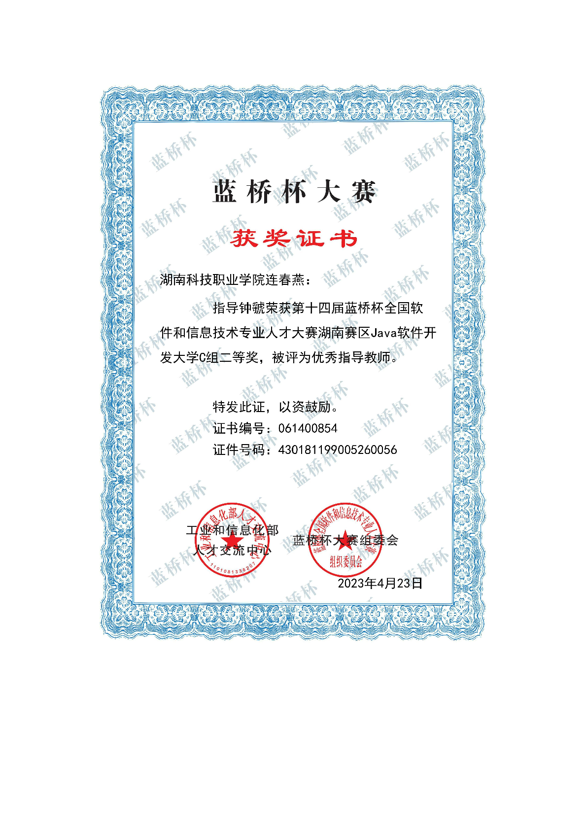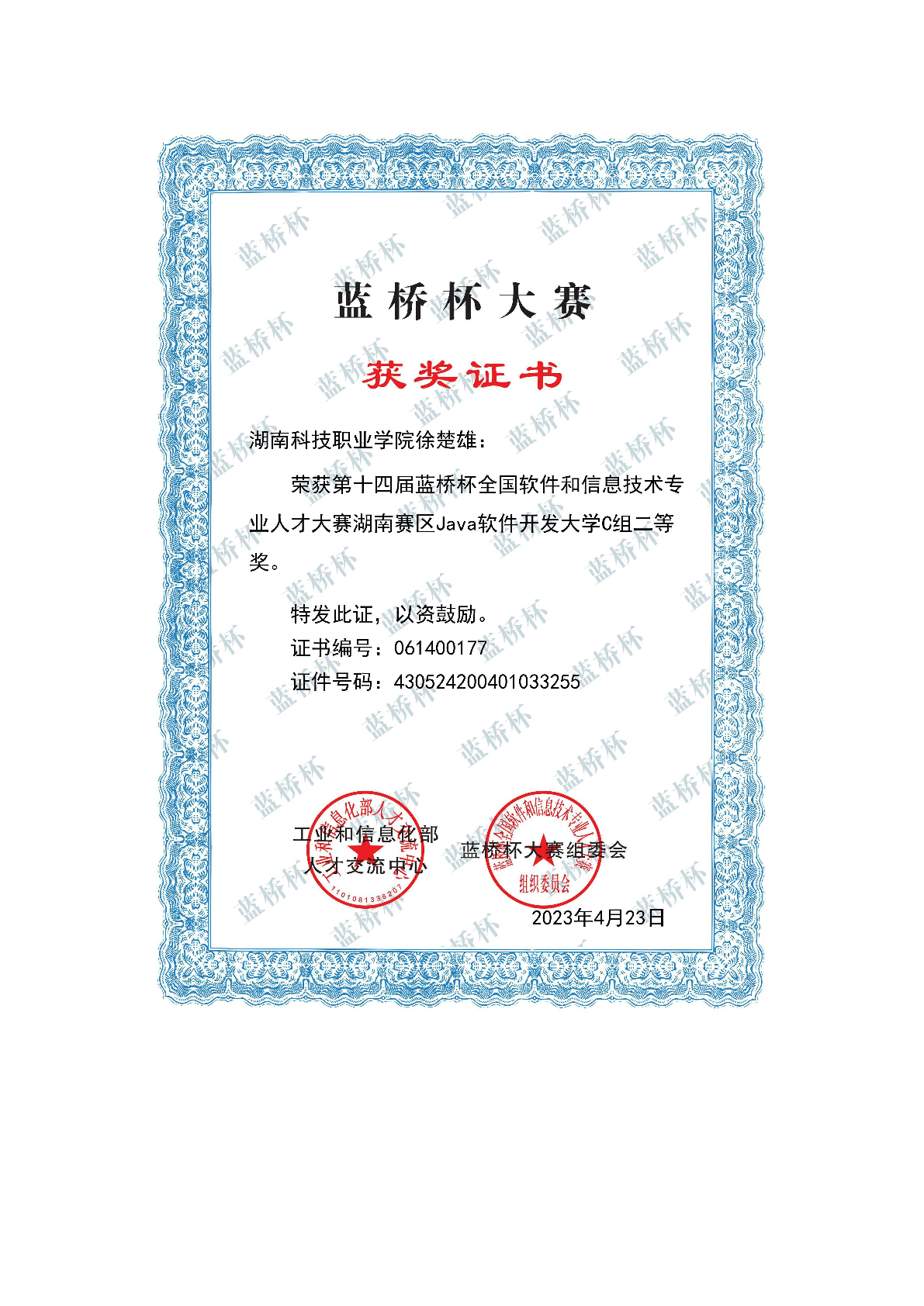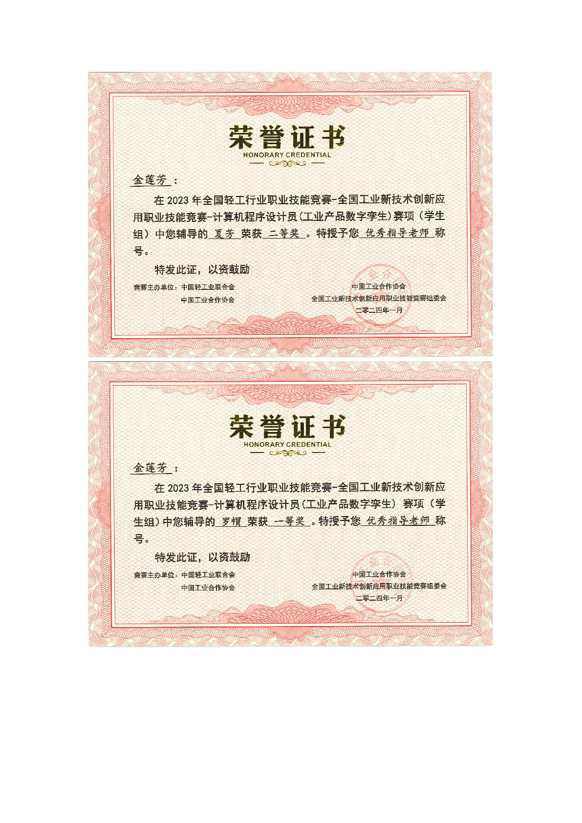 2023年度软件学院师生部分获奖证书