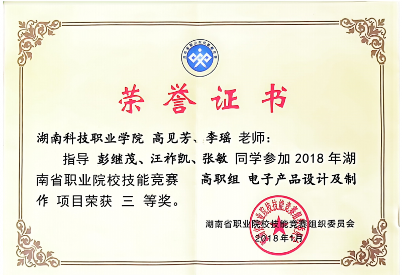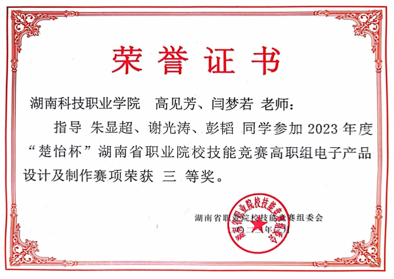 应用电子技术专业的育人成果不仅包括学生在技术能力上的提升,还涉及到创新能力、团队合作能力、实践经验以及终身学习能力等方面的全面培养。近年来,学生参加技能竞赛获省级一等奖1 项,二等奖4项,三等奖10余项。2022年获湖南省毕业设计抽查优秀等级。有数十名毕业生专升本中南林业科技大学、湖南第一师范学院、财政经济学院等一本学校,其中喻涛同学考上长沙理工大学硕士研究生。
