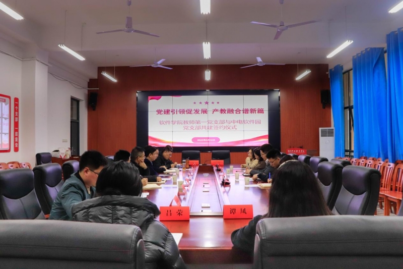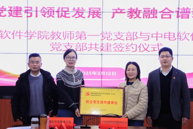 2025年3月12日下午,软件学院教师第一党支部与中电软件园党支部成功举办“党建引领促发展,产教融合谱新篇”支部共建活动。学校党委委员、副校长谭见君,学校党委委员、组织人事部部长黄志冰,中电软件园党支部纪检委员、副总经理黎璐及双方单位党员代表参与活动。