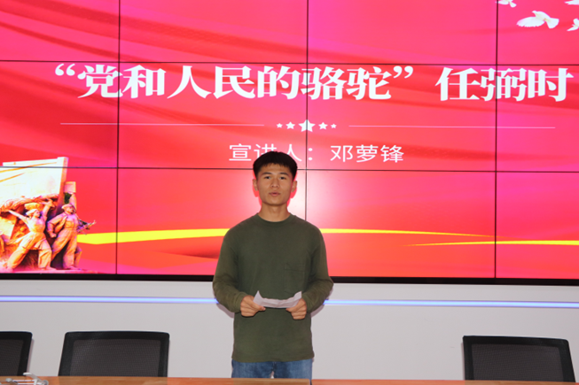 云计算运维3234班的邓萝峰同学以《百年信仰路,驼铃永不息》为题,深情讲述了革命先驱任弼时的故事。