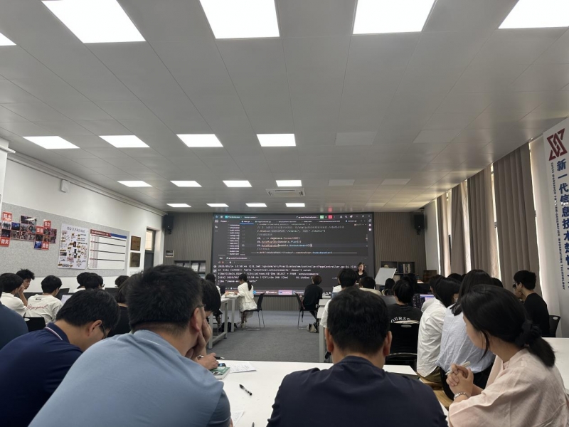 公开课上,软件学院专任教师王勇副教授以技术赋能为脉络,系统解析GoWeb开发核心技术与多元应用场景。课程从Go语言语法体系切入,通过对比经典编程范式,提炼简洁高效的设计理念,同步融入“代码规范即职业素养”的课程思政理念;在Web框架搭建环节,以Gin框架为案例,演示路由设计与中间件开发时,特别强调代码优化背后的工匠精神,通过剖析框架源码中对并发性能的极致打磨,引导学生体悟技术匠心。同时王勇还引入AI大模型辅助开发,现场演示通过自然语言指令生成代码,讲解如何利用AI提取业务逻辑关键字、优化数据库查询语句。整堂课以“语法筑基—框架实战—AI赋能”为主线,既系统夯实“从语言规范到架构设计”的技术链条,更通过代码伦理、性能优化哲学与智能工具应用的深度融合,培育“精于技术细节、诚于匠心打磨、敏于创新趋势”的新时代开发者职业品格。