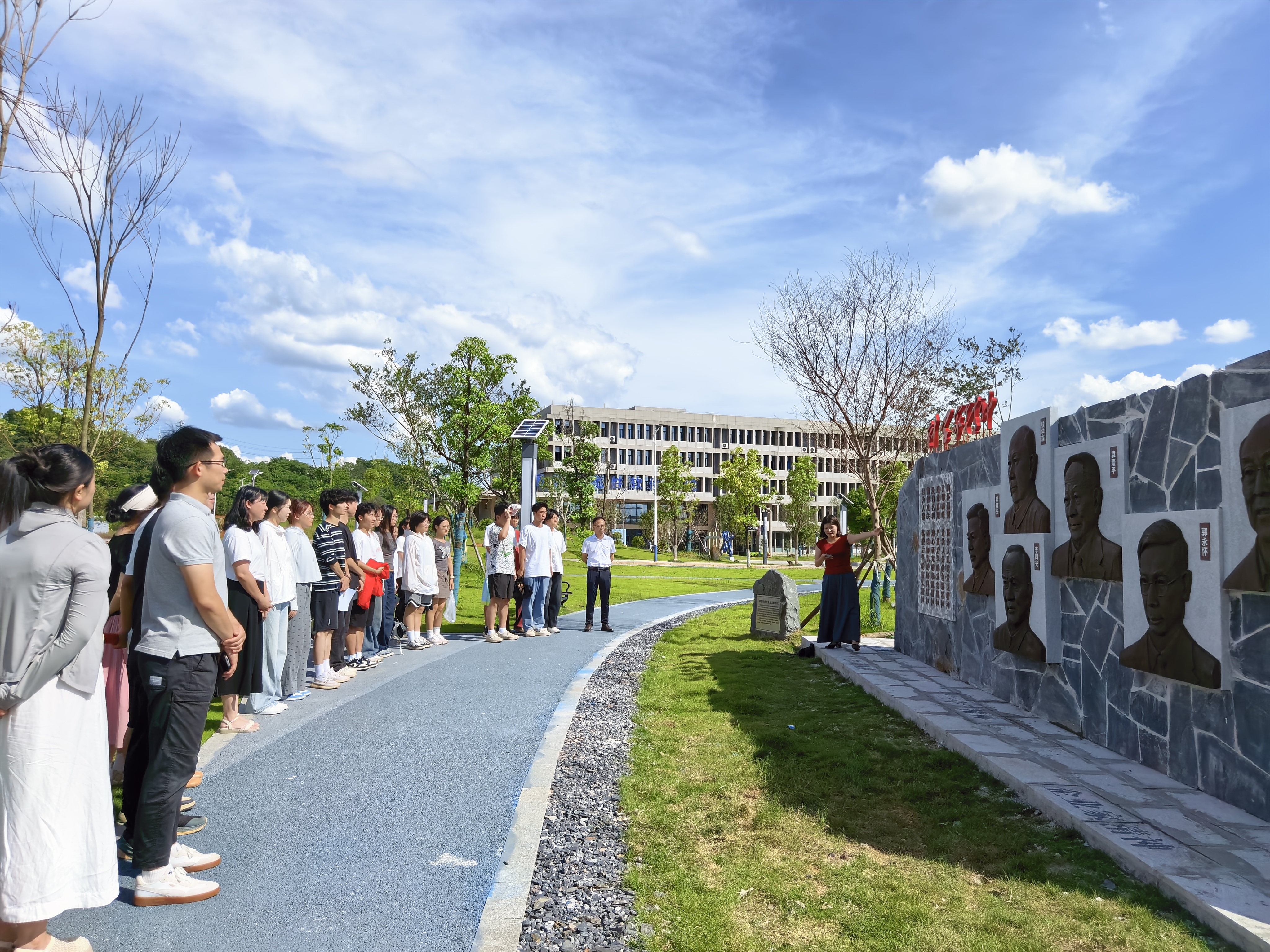 思政文化园参观过程中,大家随着马克思主义学院欧阳丹妮老师的讲解,以“移动”深悟“建党精神”“长征精神”“两弹一星”精神“工匠精神”和“先进典型”等展区内容。通过实地参观,大家仿佛置身于历史的长河中,亲身感受先辈们的奋斗历程和伟大精神。这些精神如同火炬,照亮了前行的道路,激励着大家在新时代传承红色基因,为党和人民的事业不懈奋斗。