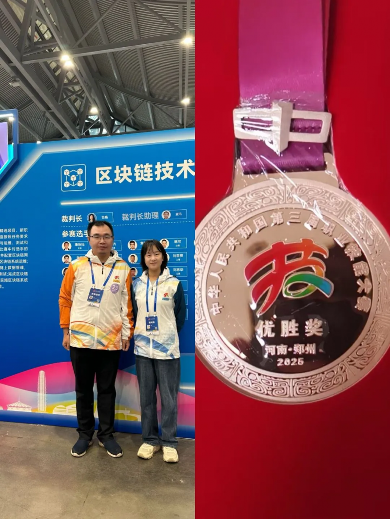 9月19日至23日,中华人民共和国第三届职业技能大赛在河南郑州举行。我校软件学院区块链技术应用专业教师唐俊(指导教师:戴臻)在国赛精选赛项区块链技术赛中表现优异,荣获优胜奖。