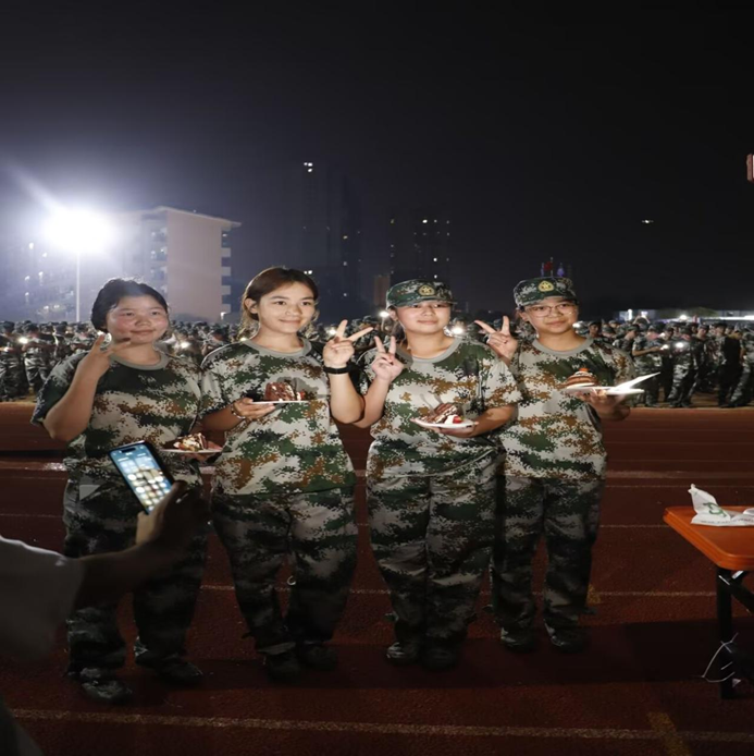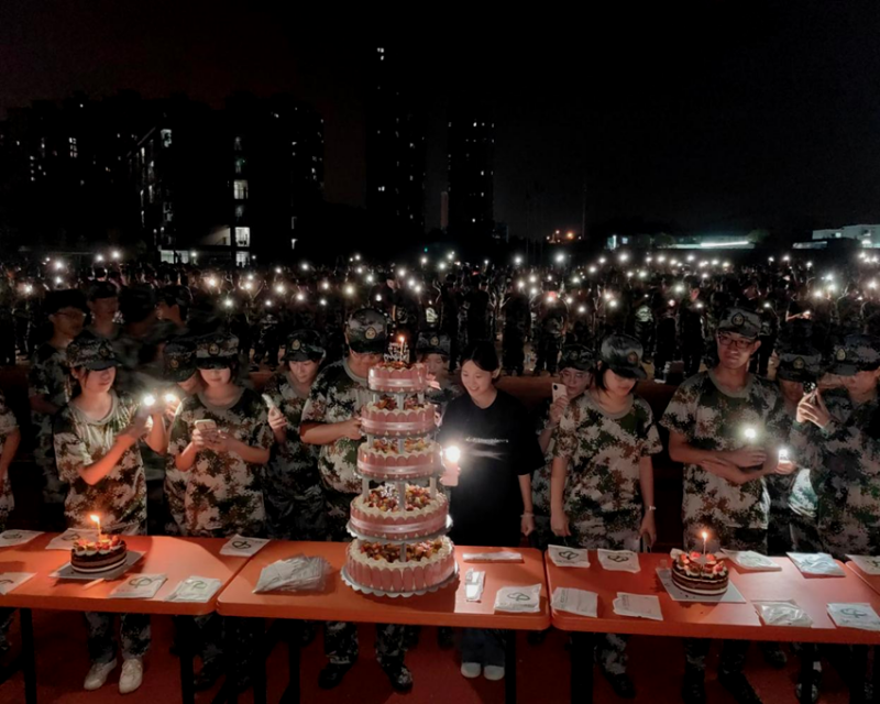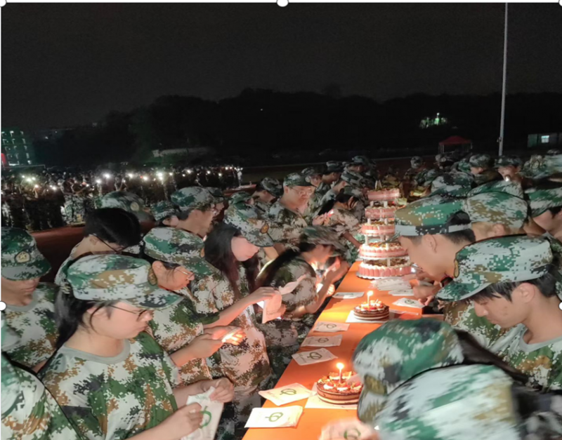 夜幕之下,一份由学校精心策划的生日惊喜温馨而至。为在国庆节前后生日的新生庆生,学校特别准备了满载心意的蛋糕。在软件学院领导老师、新生班辅导员、军训教官、班助们的共同见证与祝福下,摇曳的烛光映亮了一张张青春洋溢的脸庞。这场生日会的高潮,并非仅仅是蛋糕与歌声,而是一次震撼人心的青春宣誓。在生日会的最后,软件学院1100余名新生自发肃立,齐声呼喊:“以吾辈之青春,捍卫盛世之中华”。铿锵有力的誓言划破夜空,久久回荡。2025级新生们用这种最直接、最热血的方式,表达了对祖国母亲的爱。