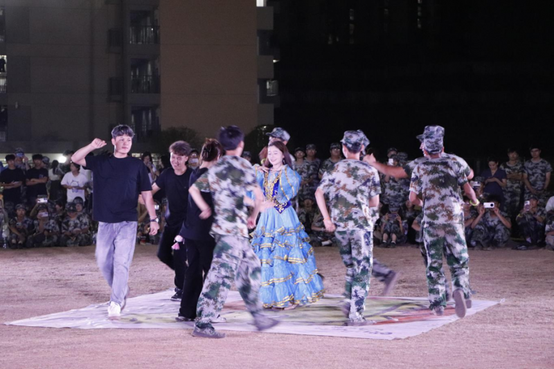 中秋月满,桂香盈场。10月6日晚,湖南科技职业学院天心校区北院田径场灯火璀璨、暖意融融,软件学院以 “迷彩映明月,代码致青春” 为主题,为 2025 级军训新生打造了一场中秋晚会视听盛宴。校学生工作部部长李洁妮、武装保卫部部长曾亮、团委副书记(挂职)古丽努尔・玉散,软件学院党总支书记辛绪坤、副书记向建军、学工办主任兼团总支书记谢小星、新生班辅导员们与1100余名新生欢聚一堂,在军训的严谨节奏中,共赴中秋团圆之约,让异乡学子尤其是新疆籍同学深切感受到“家”的温暖。