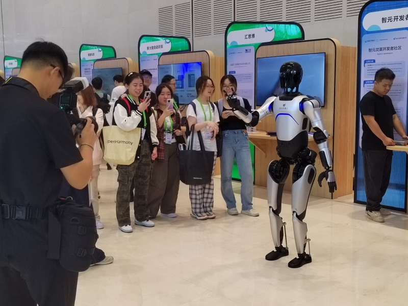 为通过场景化、体验化的方式,全方位展现鸿蒙技术在千行百业的创新应用与落地成果,大会特设八大沉浸式鸿蒙生态展区。不同的鸿蒙生态核心共建企业,展示了与鸿蒙领域相关的突破。同学们通过直观感受全尺寸类人型机器人后表示:"大会展示的开源机器人开发平台,为我们的毕业设计提供了全新方向。"