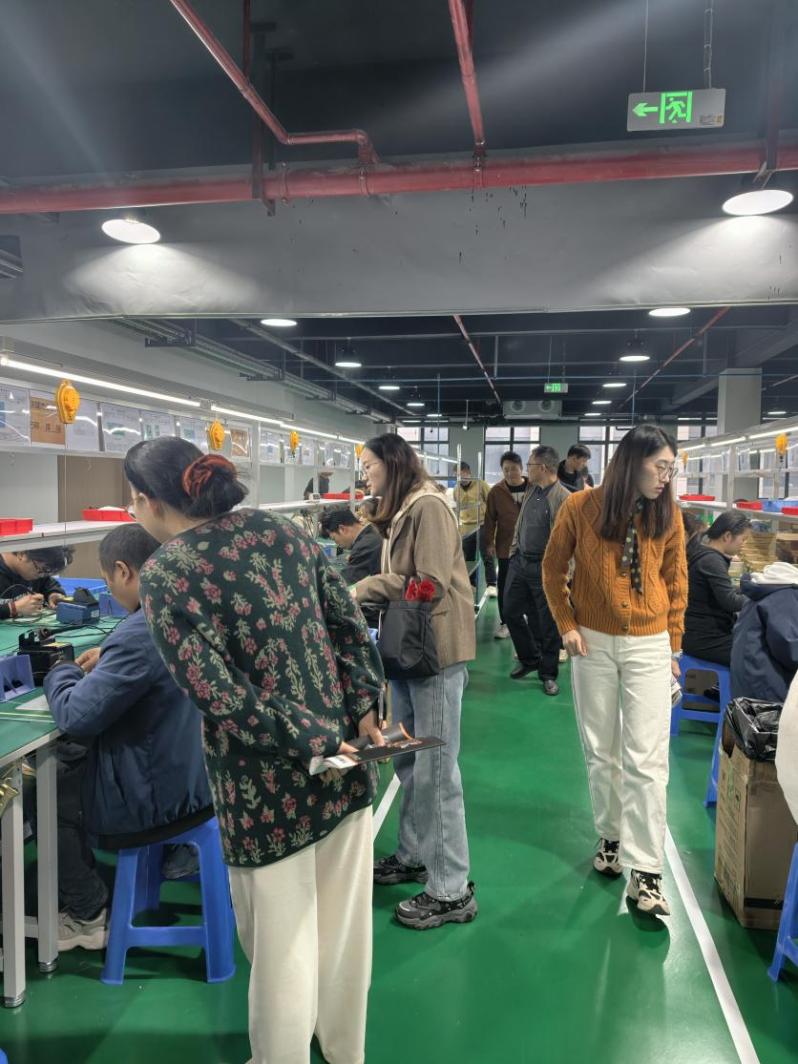 座谈会后,在技术总监的带领下,教师一行实地参观了鑫泰仪器的生产组装车间、精密测试实验室及产品展厅。从元器件筛选、SMT贴片焊接,到整机装配、性能调试,老师们近距离观察了一款智能检测仪器从设计图纸转化为实体产品的全流程。“每一个电阻电容的选型都关乎产品稳定性,每一道质检工序都是对用户负责。”车间主任的介绍让教师们深刻感受到企业“精益求精”的工匠精神,也为后续实训课程设计中强化质量意识培养提供了新思路。参观过程中,双方还就学生顶岗实习岗位设置、企业导师选聘标准等具体问题展开讨论。