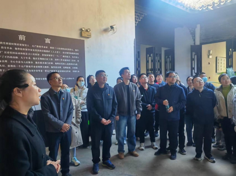 随后,党员队伍前往本次活动的红色教育核心地点——李立三同志故居。在故居纪念馆内,跟随讲解员的深情讲述,党员们回顾了李立三同志为中国革命和建设事业艰苦奋斗、无私奉献的一生。一幅幅历史图片、一件件珍贵实物、一段段感人故事,将大家带回到那个烽火连天、热血澎湃的革命岁月,深刻感悟了老一辈无产阶级革命家坚定的理想信念和崇高的革命精神。