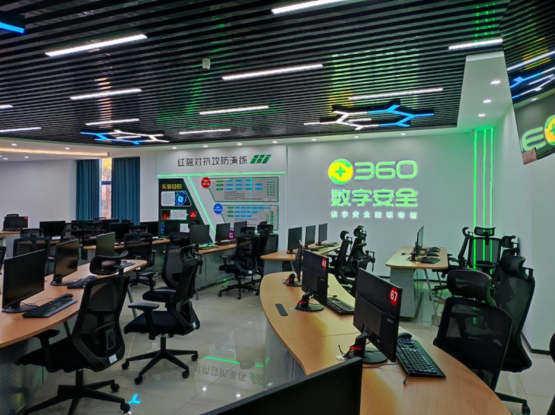 本专业与三六零数字安全科技集团有限公司共建数字安全攻防演练中心,工位150余个,建筑面积近500平方米,中心有网络实训计算节点3个,靶场管理计算节点1个,靶场计算节点3个,靶场配置访问节点84个,配备LED大屏,交换机等相关教学辅助设备,中心同时拥有网络攻防训练平台和靶场训练平台。