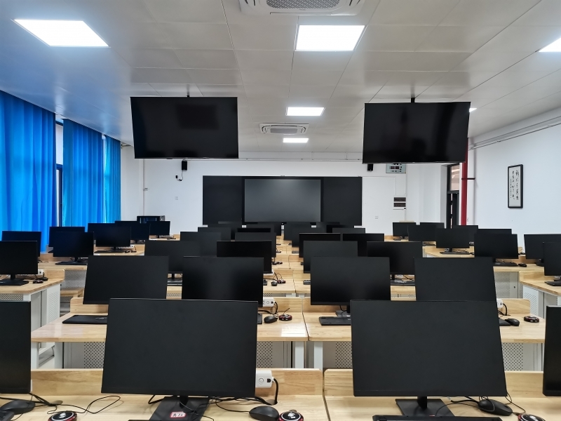 本专业配有Web安全实训室等实训室,总建筑面积近300平方米,工位200余个,其中每个实训室按照高水平多媒体机房建设并配置有60台高配置计算机,每间实训室均配备交换机、智慧黑板等相关教学辅助设备。