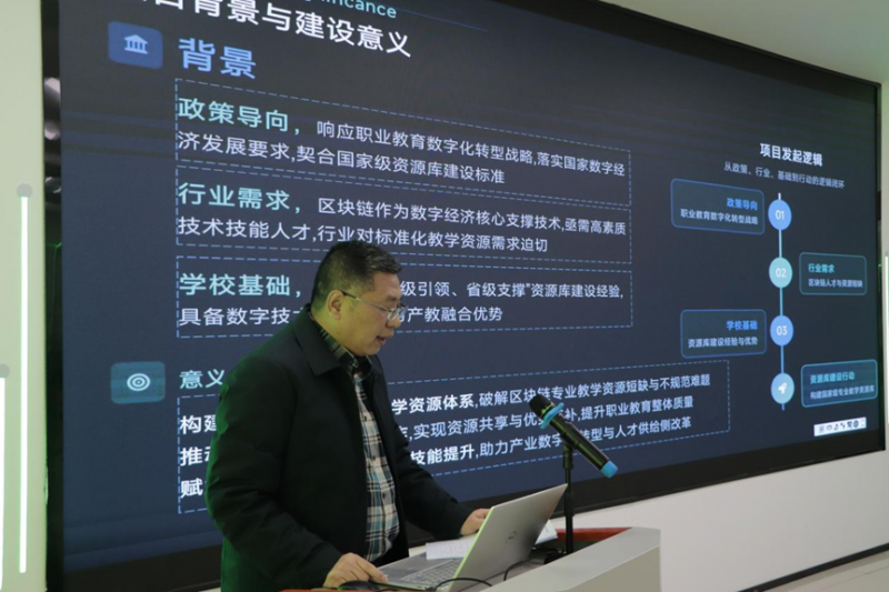 会议特别邀请教育部职业教育发展中心质量监测与指导处处长周凤华作专题报告。她深度解读产教融合政策导向,强调职业教育资源必须紧跟区块链产业技术发展步伐,实现“产业需求-资源升级-人才培养”的同频共振。行业企业代表、新道科技高级教育规划顾问谷彬分享了人工智能技术重塑专业课程体系的实践案例,为资源库数智化升级提供可借鉴的技术范本与实施路径。