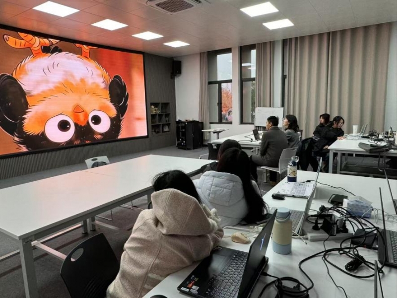 指导过程中,碧玺传媒刘艳老师聚焦同学们作品中影视语言运用、视频节奏把控、叙事逻辑梳理等核心问题,结合行业主流标准与商业项目案例进行专题剖析,逐一指出作品不足并提供可落地的优化方案,助力同学们补齐创作短板;邓东老师则围绕AI智能体生成动态漫的核心技术,从工具操作、参数调试、效果优化等方面深入拆解重点难点,以通俗直白的语言解读专业技术原理,帮助同学们快速掌握前沿技术要点与实操技巧。