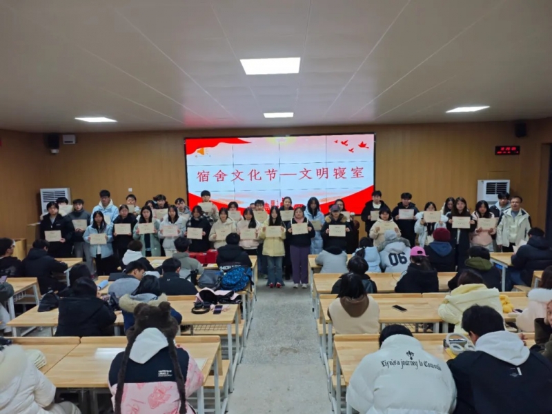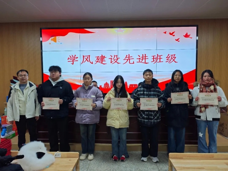 随后进行的颁奖仪式将大会气氛推向高潮。在激昂的乐曲声中,获奖代表们精神抖擞,分批有序上台接受荣誉。学院党总支书记辛绪坤为荣获“学风先进班级”和“文明寝室”称号的集体代表颁奖;