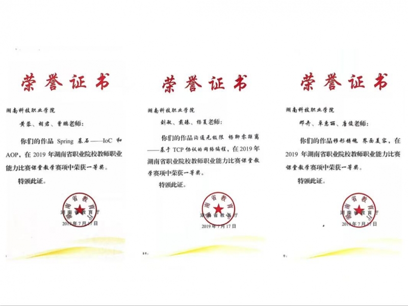 4.2019年 湖南省职业院校教师职业能力比赛一等奖(《TCP协议的网络编程》、《移形铸魂 界面美容》及《Spring基石——IoC和AOP》)
