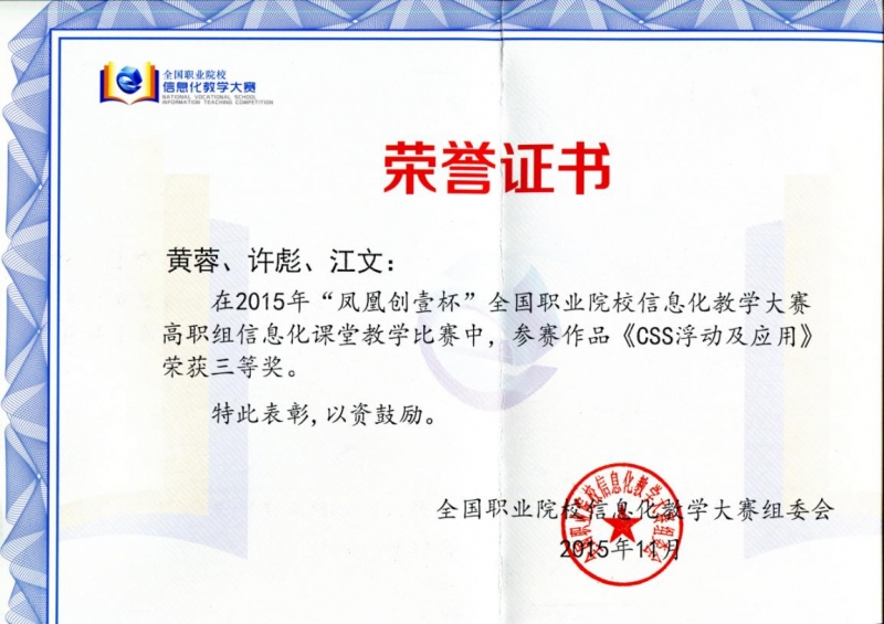 2.2015年全国职业院校信息化教学大赛三等奖(获奖作品:《CSS浮动及应用》)