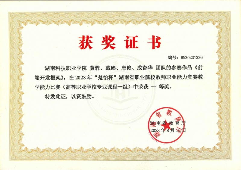 2.2023年湖南省职业院校教师职业能力竞赛教学能力比赛一等奖(获奖作品:《前端开发框架》)