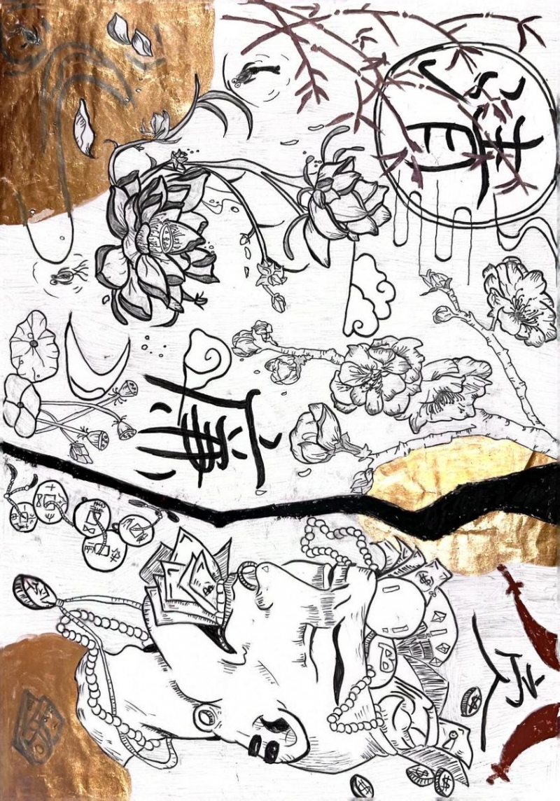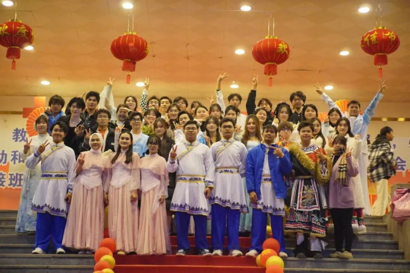 图7 楚怡班同学与学院其他专业同学参加元旦晚会节目后合照